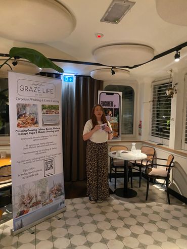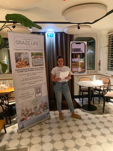 Michelle from Graze Life also did an interesting talk. Those that know me know I’m already a huge fan of Michelle’s business but her talk last night was very eye opening. To summarise the best I can Michelle started a Grazing company from home shortly before lockdown. Lockdown hit, she decided rather than ceasing operations she would do home deliveries which went from strength to strength (she didn’t give up!). Things eventually went back to normal and then she opened The Lounge by Graze Life here in Berkhamsted (where we first met!) and for the past few years she had a highly successful High Street business loved by many. The business was thriving and highly successful, but Michelle was burning out working days, evenings, weekends, the overheads were mounting up and an opportunity arose as someone offered to buy out her lease so she took the opportunity to close the Lounge and take a step back. Today Michelle continues to run her highly successful business from home but she’s also living! She’s bought a house with her partner which they are renovating (queue brand new kitchen island ready for Graze prep!), and invests time and effort into looking after no1!